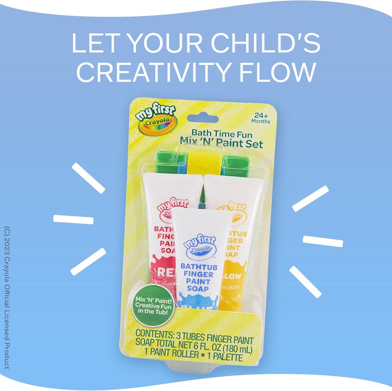 BATHTUB PAINT FOR KIDS: Bath time just got a lot more colorful with this set of Crayola finger paint for kids! Each pack comes with red, blue, and yellow paint (2 fl. oz. each) for a fun variety of colorful options, plus a paint roller and palette for creative combinations. For ages 2 and up.