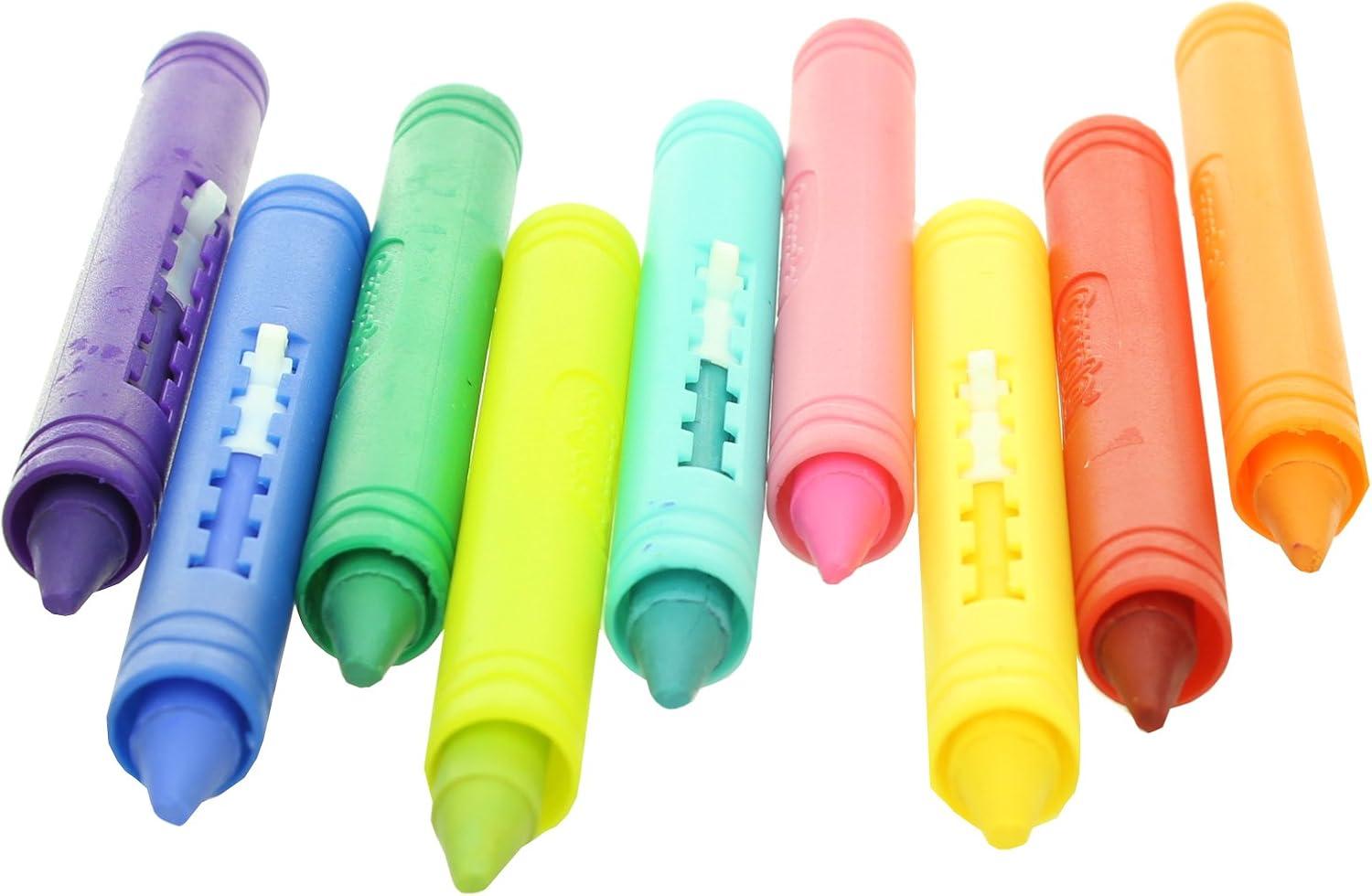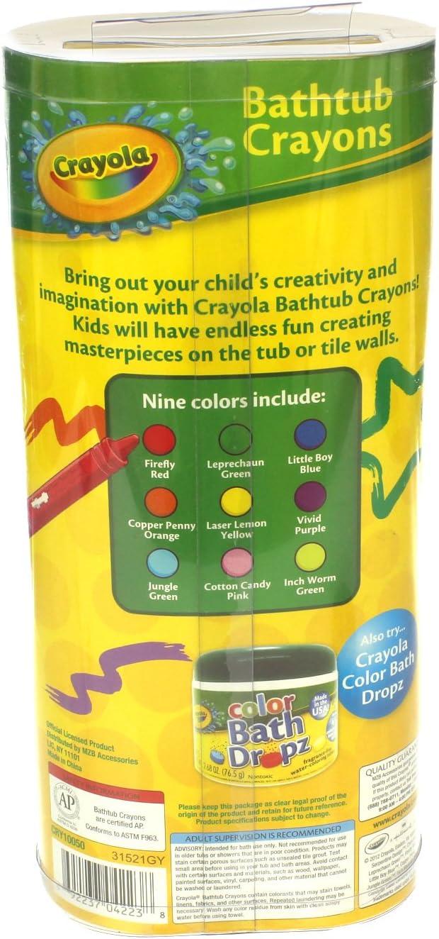 Make bath time creative with these Crayola Bathtub Crayons, 9-Count. The package includes nine vivid colors plus one bonus crayon. Little ones will love creating masterpieces on your bathtub wall. The crayons are non-toxic and easy to clean when bath time is done. They should not be used on porous surfaces, like grout, or older showers as they may stain some surfaces. Crayola crayons for the bath are ideal for ages 3 and up and will let kids' imaginations run wild.