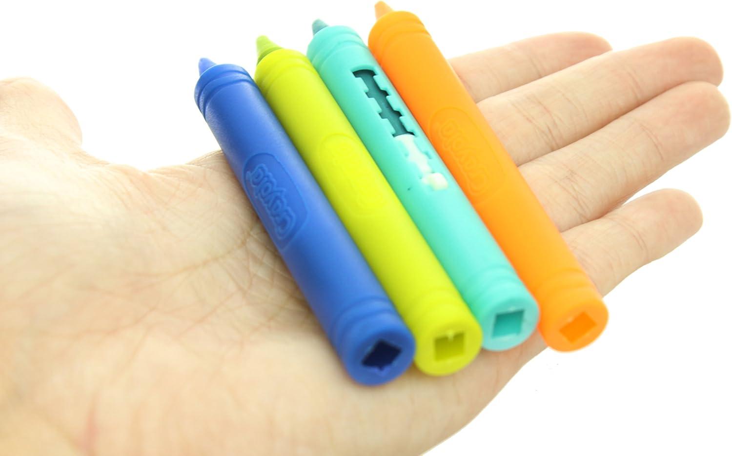 Hard plastic cases contain retractable Crayola bathtub crayons.