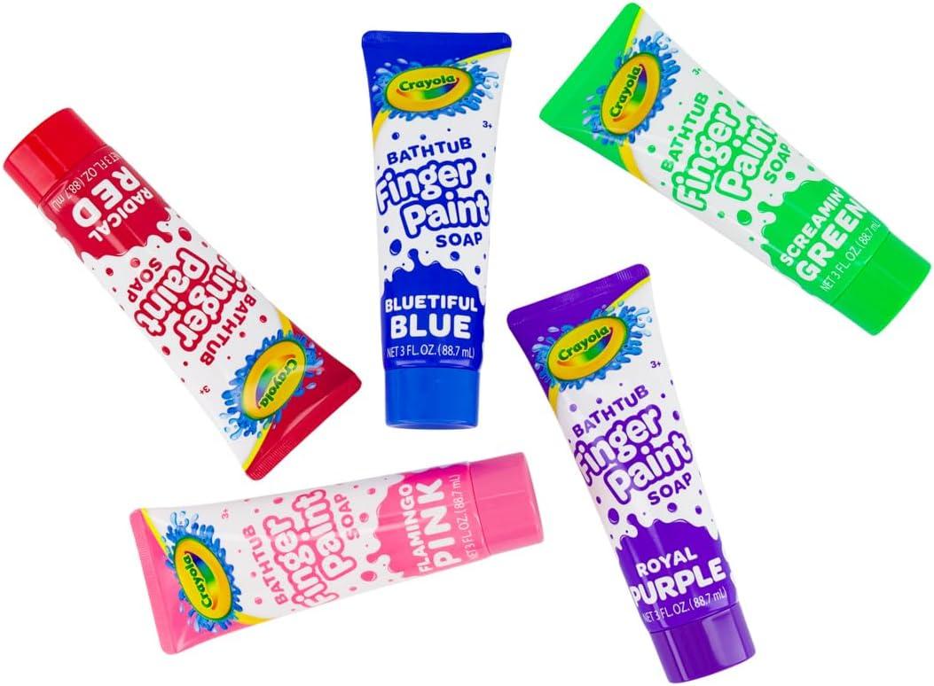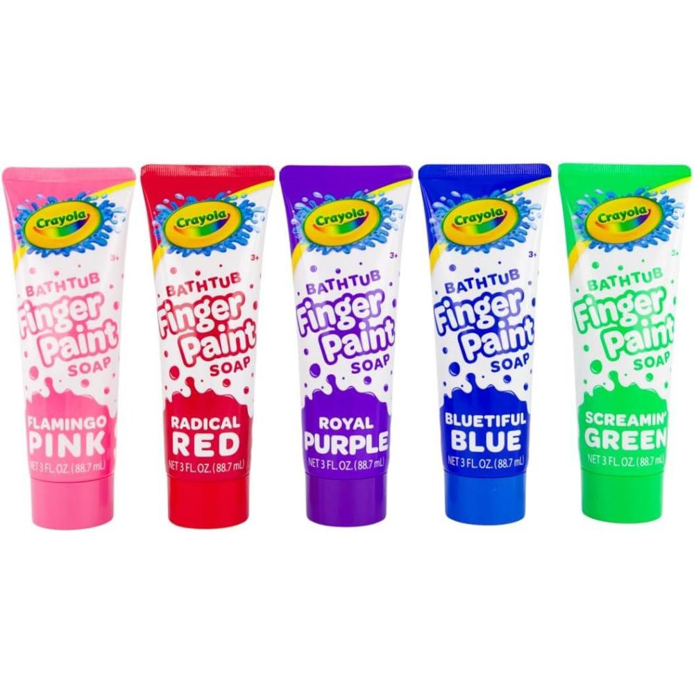 COLORFUL FINGERPAINTS: This bundles includes 5 different Crayola washable bathtub finger paints. Colors included are: Bluetiful Blue, Screamin' Green, Radical Red, Flamingo Pink, Royal Purple. Create your own masterpiece right in the bath with you!