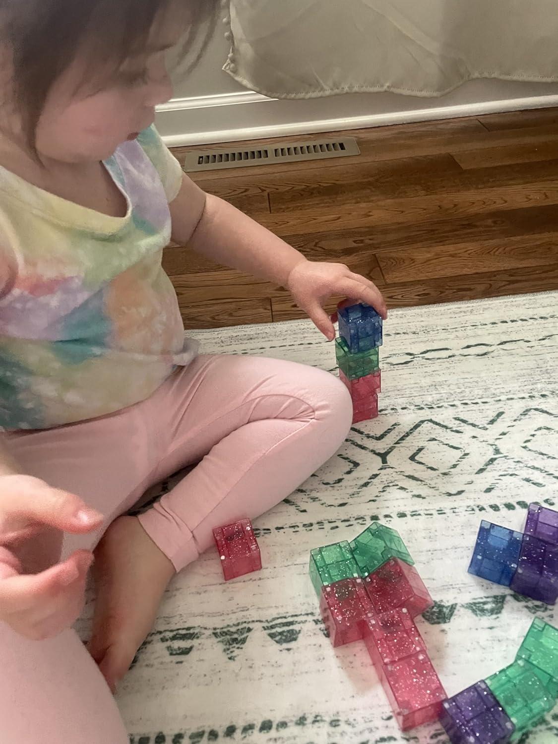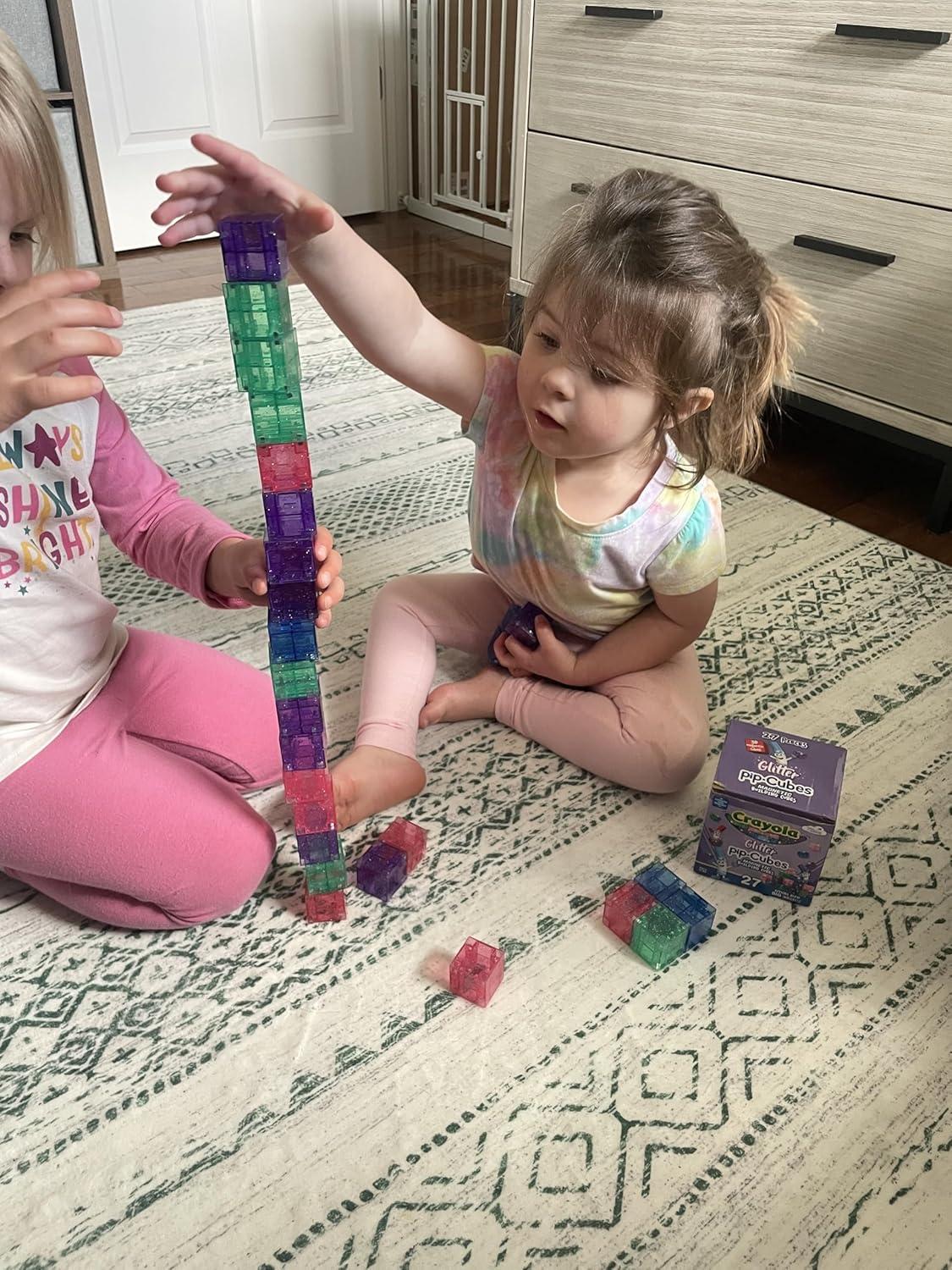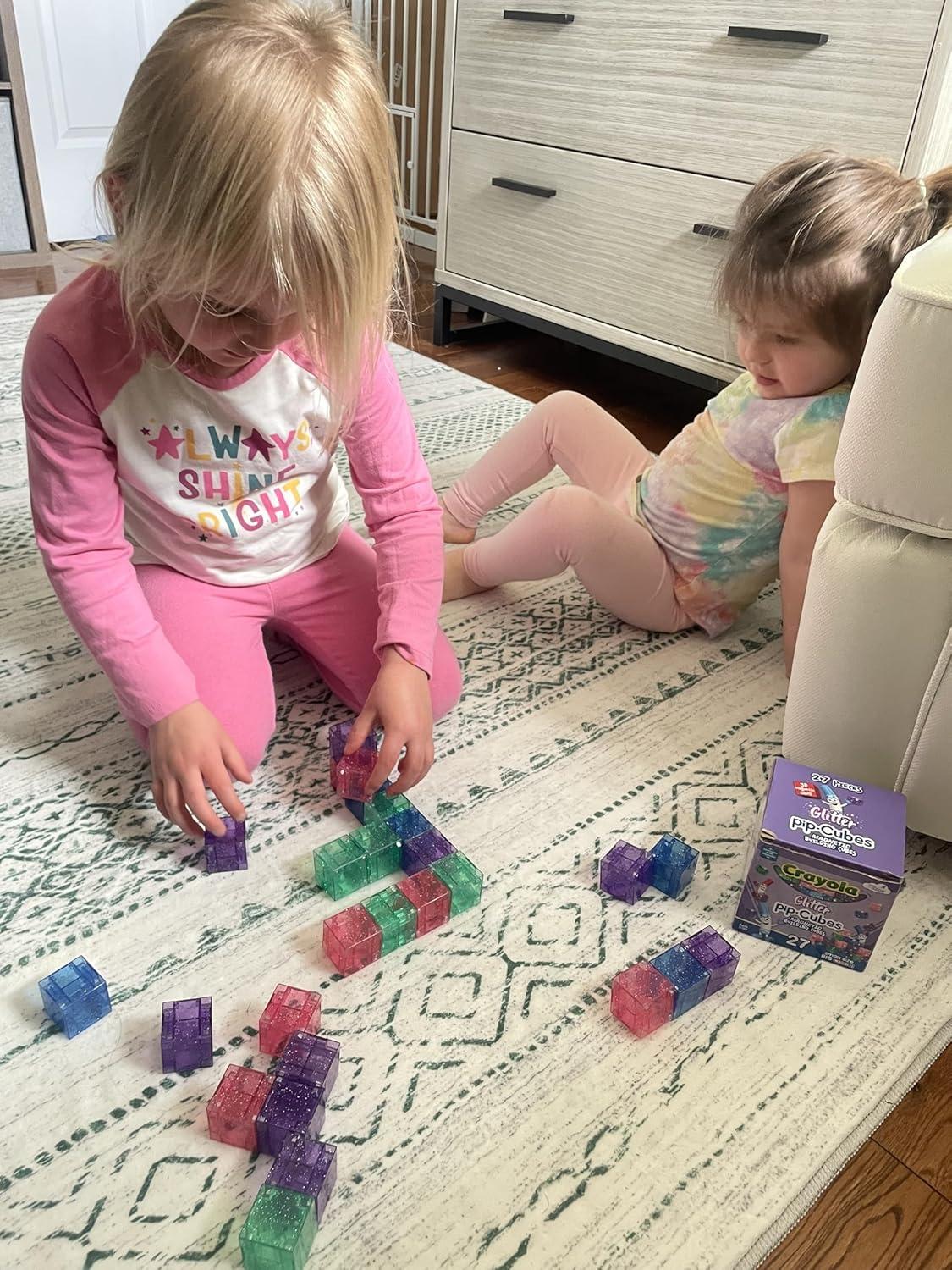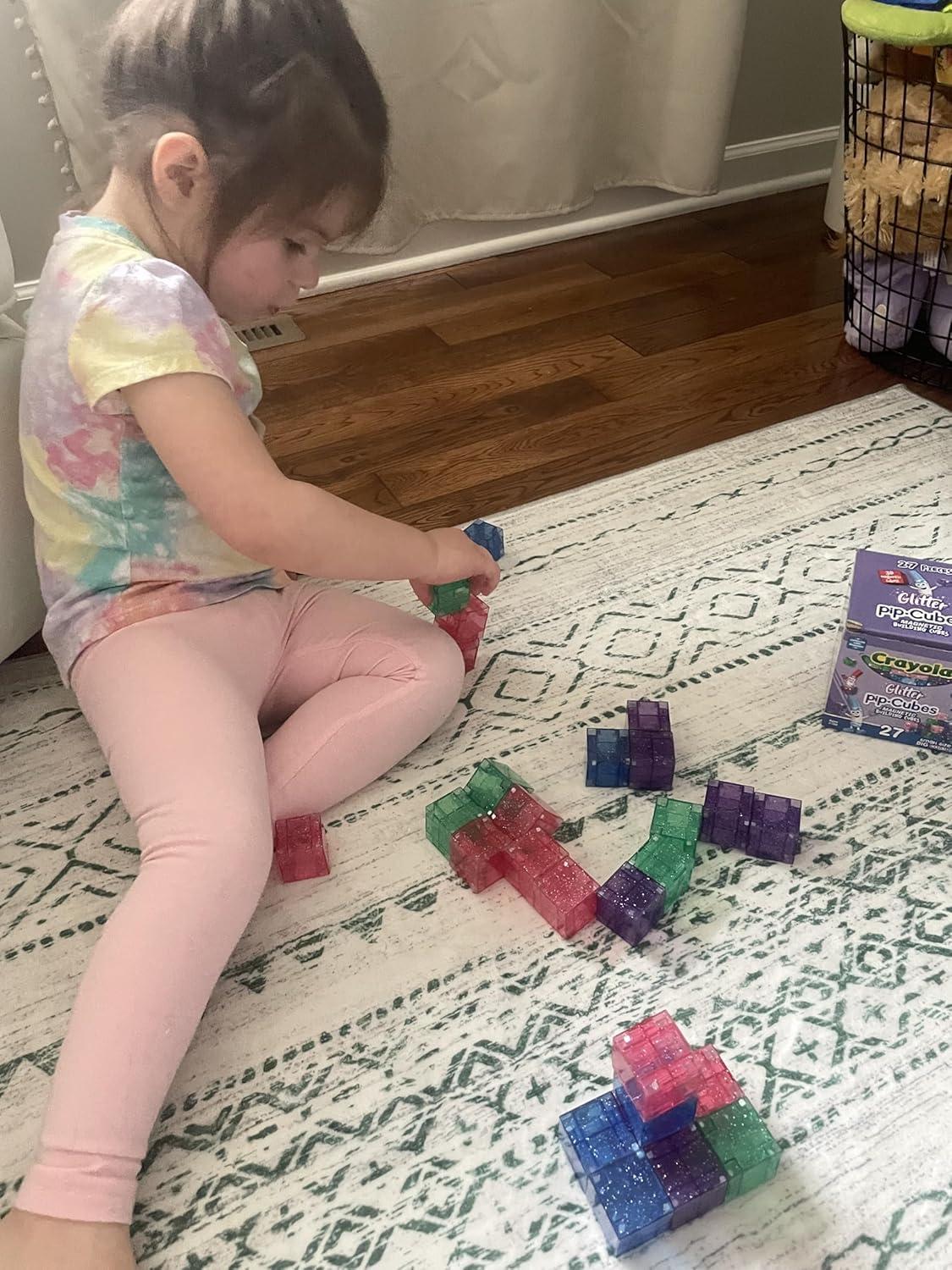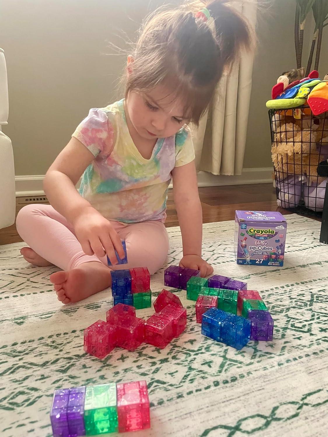 Crayola Glitter Magnetic PIP Cubes, Mini Magnetic Blocks Playset, STEM & Montessori Building & Educational Toys for Kids, Travel Toys for Boys and Girls Ages 3+, 27-Piece Set
