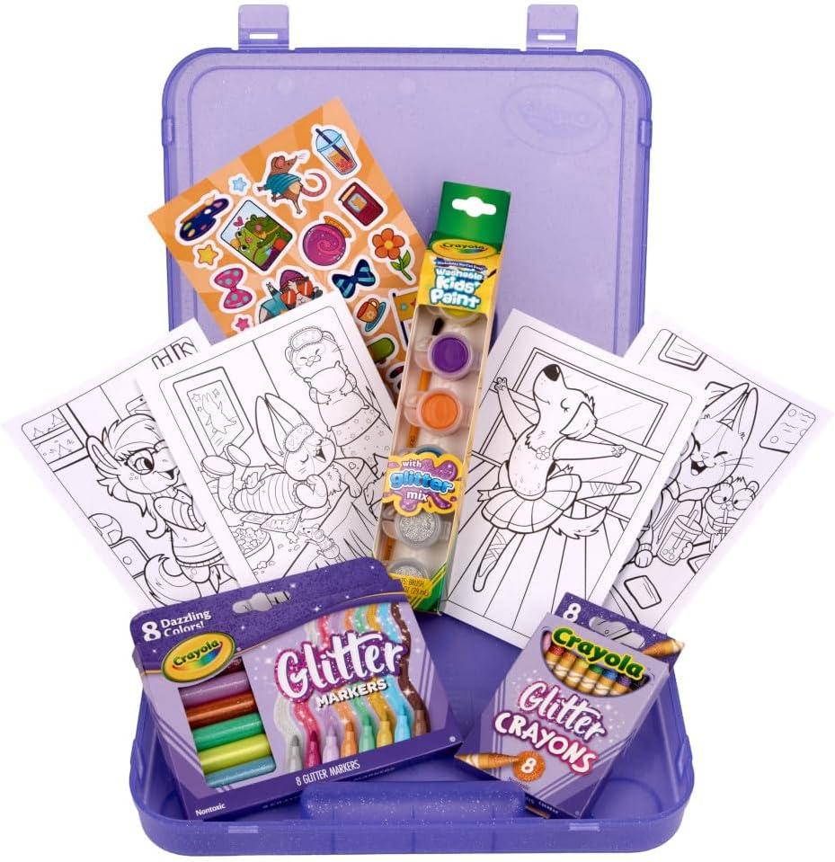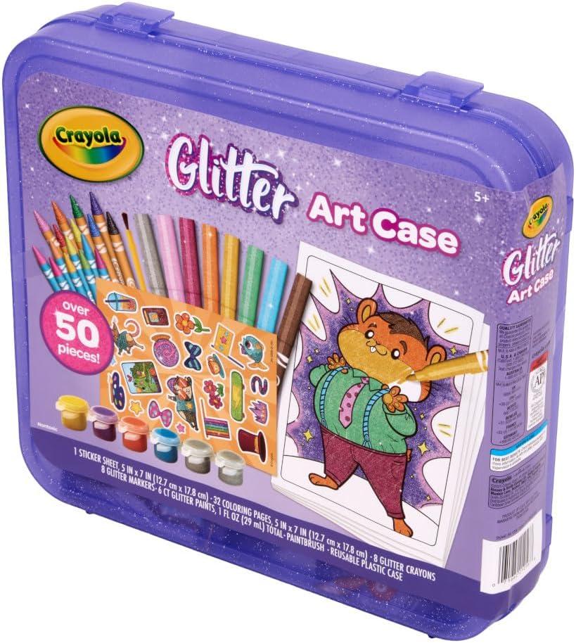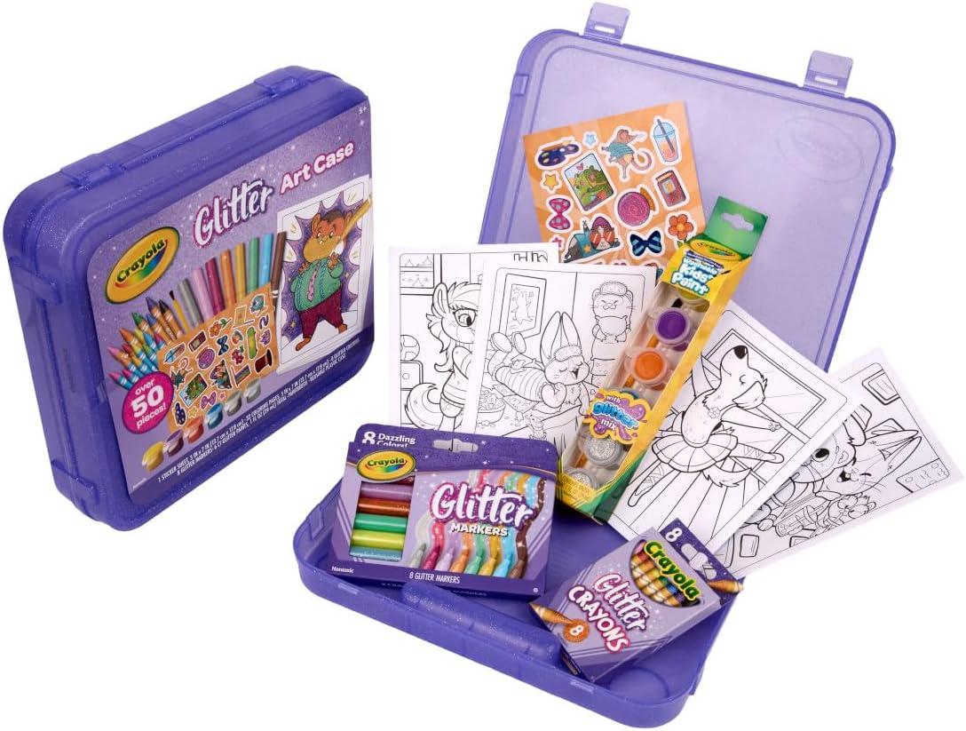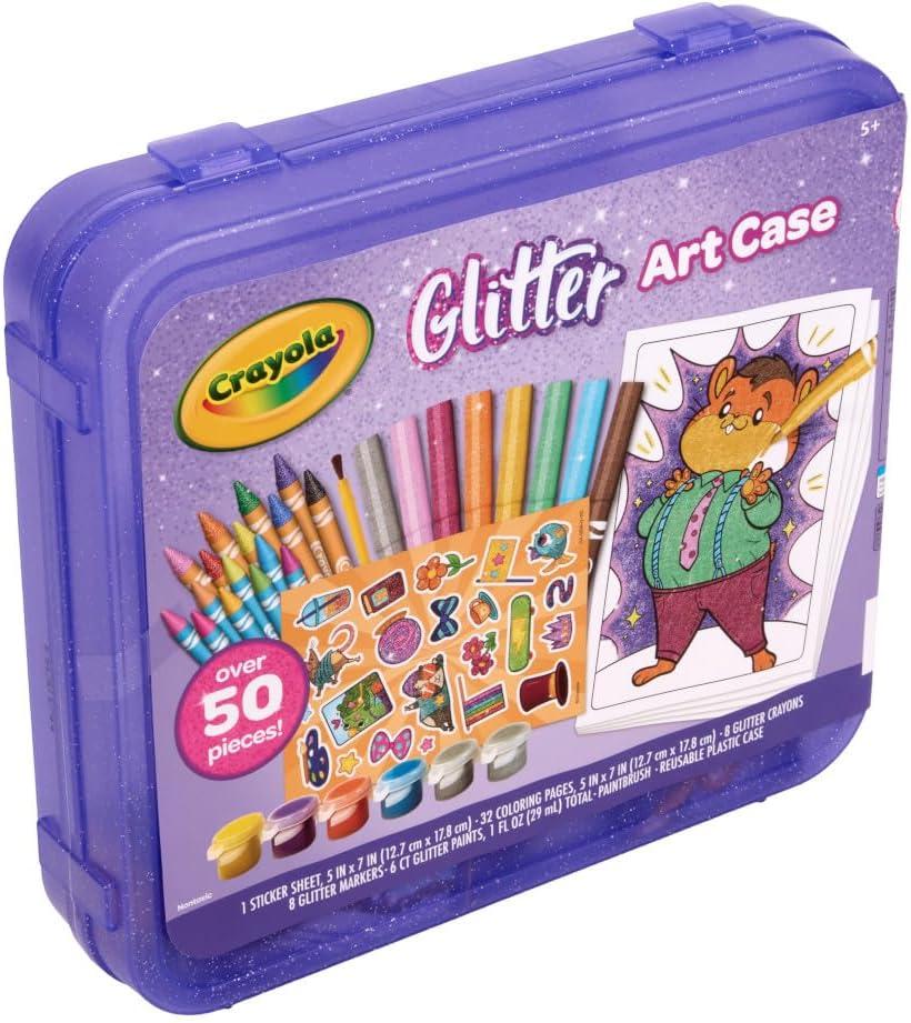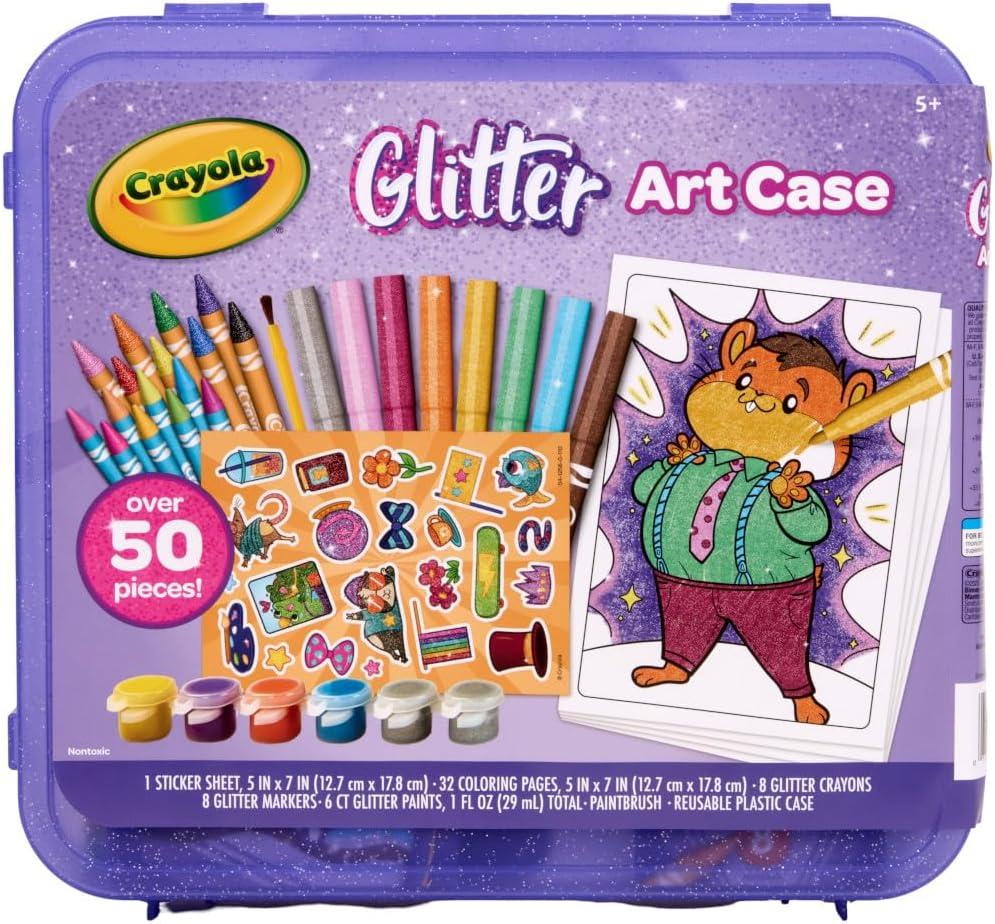 Crayola Neon Art Case (50+pcs), Holiday for Boys & Girls, Neon Paint, Markers & Crayons, Kids Glow in The Dark Art Set, Ages 5+(Glitter)