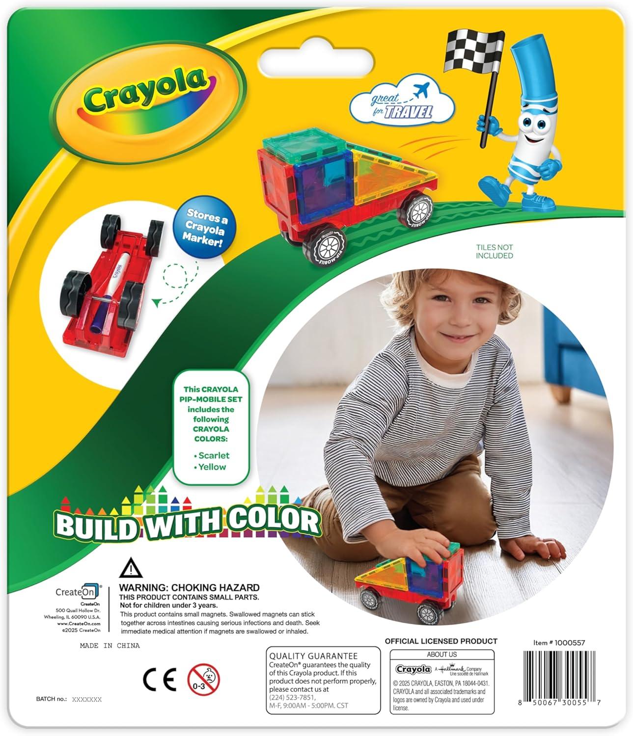 Turns Creations Into Cars – Transform magnetic tile builds into moving vehicles! Crayola PIP-Mobiles add a rolling chassis to your Crayola Pip-tile magnetic tile sets (sold separately) for endless imaginative play.