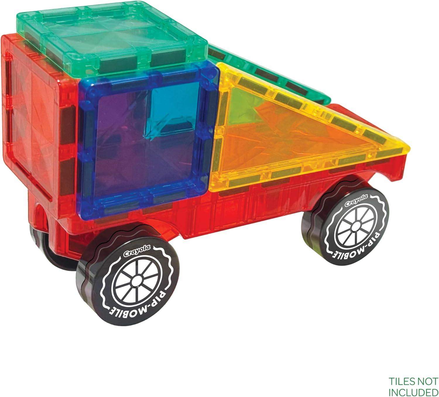 Crayola PIP-Mobiles Rolling Chassis Accessory for Magnetic Building Tiles – Add Wheels to Crayola PIP-Tile Sets – STEM Learning Toy for Kids Ages 3+ – Creative Educational Travel Toy – 2-Pack (Bold)
