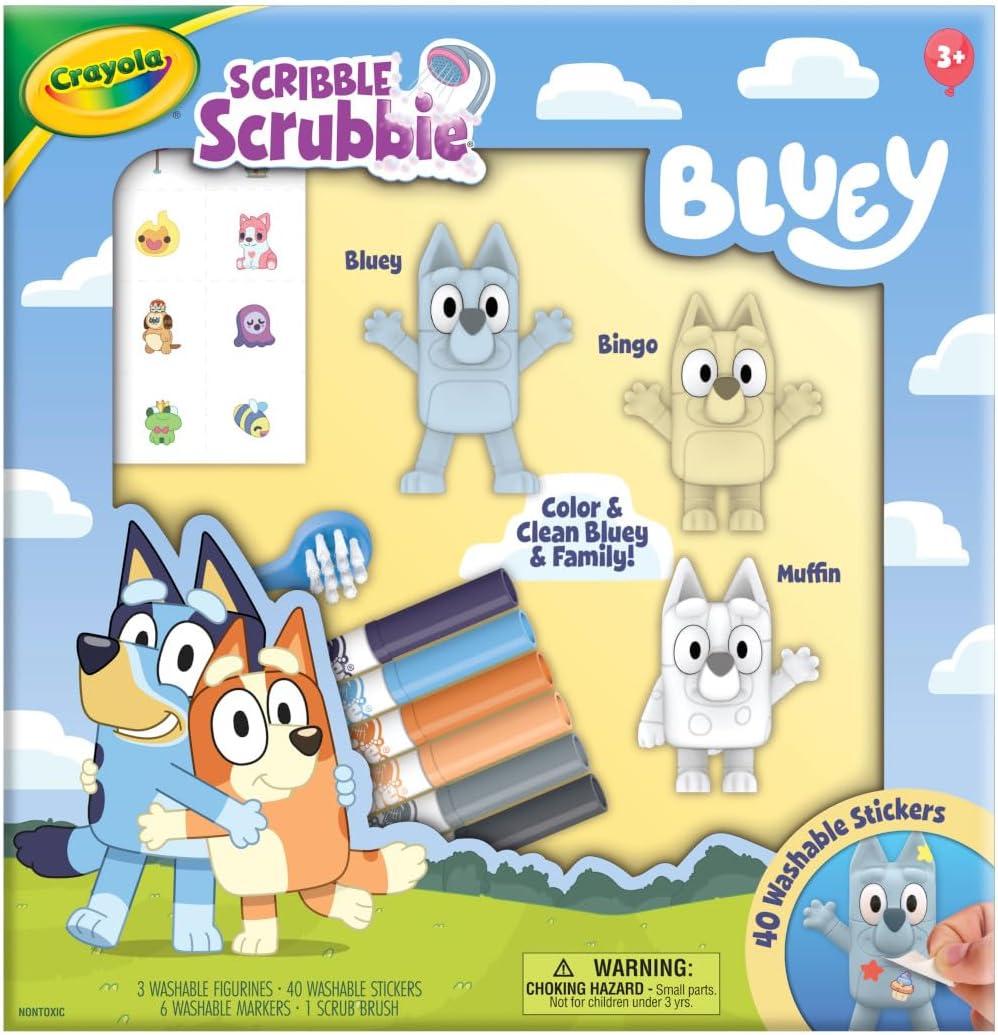 Crayola Scribble Scrubbies Deluxe Bluey Playset (3ct), Toddler Arts & Crafts Kit, Washable Stickers, Bluey Toys, Coloring Gift for Kids, Ages 3+(Deluxe)