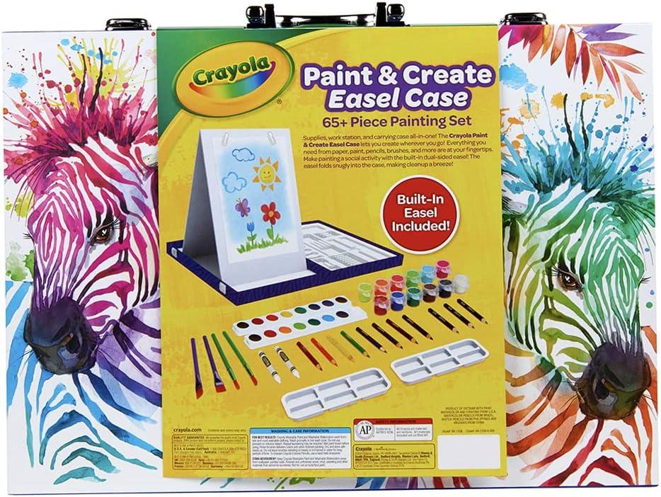 The Crayola Easel Art Case has all kids need to paint and create the easy way, with a built-in easel! The dual-sided tabletop easel even allows two artists to work at once! The set includes a durable and portable travel art case that makes it easier than ever to keep painting supplies protected & organized while on-the-go! Try out new painting techniques with included tools like Crayola Resist Crayons or Sketch Pencils. The complete set features 12 Washable Paint Pots, 16 Washable Watercolor Paints, 8 Short Watercolor Pencils, 3 Sketch Pencils, 2 White Crayons, 4 Paint Brushes, 2 Mixing Trays, 18 Pages Watercolor Paper, 1 Sheet of Repositionable Stickers, and 1 Storage Case. Makes a creative holiday or birthday gift for girls and boys. As with all Crayola products the contents are safe and nontoxic. Ideal for ages 4 & up.