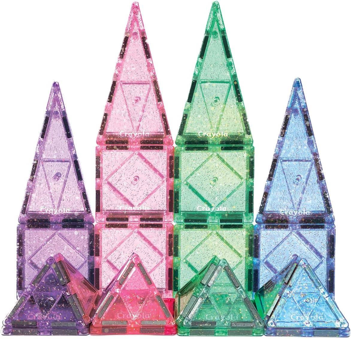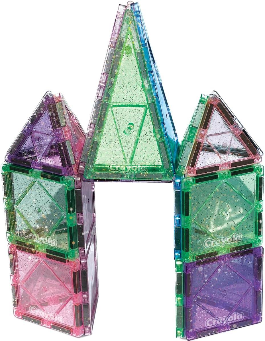 CreateOn Crayola Doodle Magnetic Tiles Building Set for Kids, Magnetic Kids’ Building Toys, STEM & Montessori Arts & Creativity Toys for Boys and Girls Ages 3+, 24-Piece Set(Glitter)
