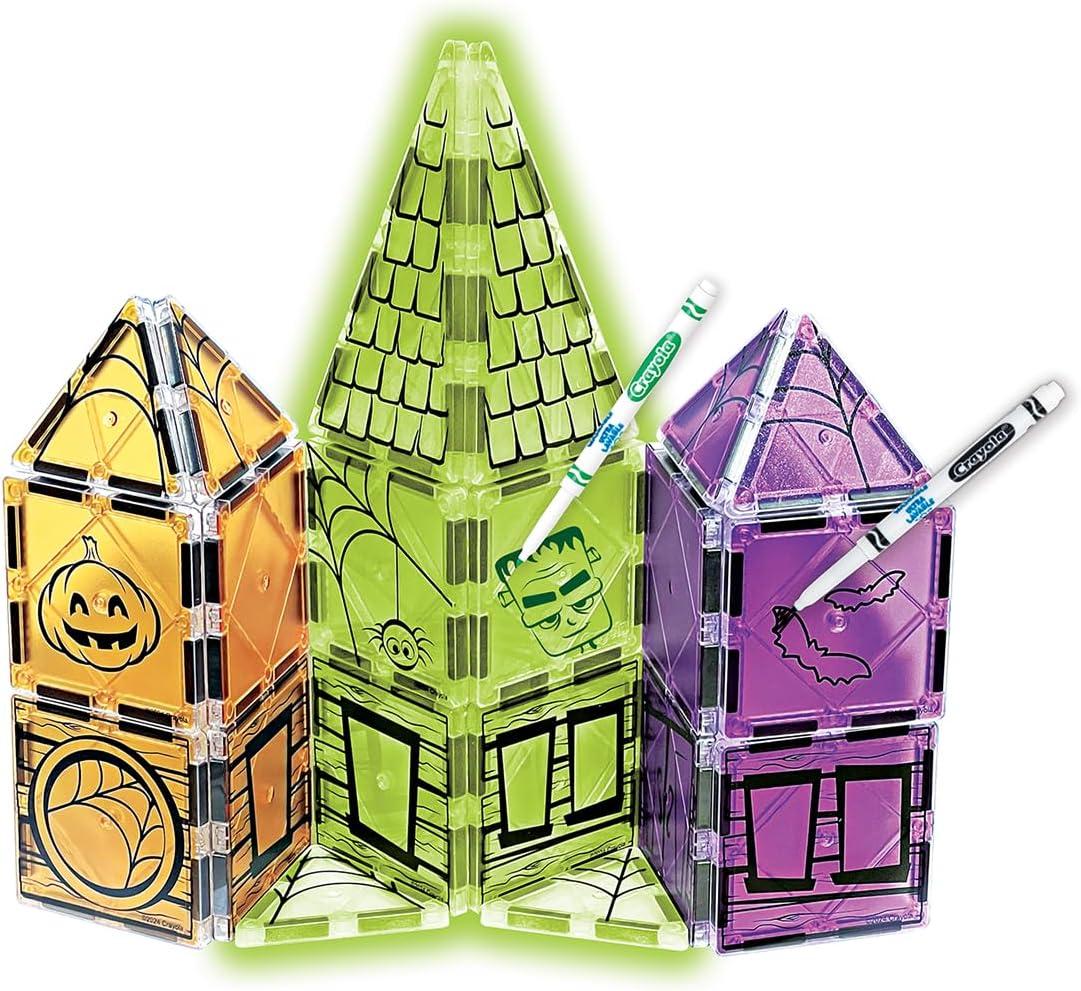 imageCreateOn Crayola Halloween Glow Doodle Magnetic Tiles Set Building Set for Kids STEM Toys for Boys and Girls Ages 3 and Up 25Piece Set