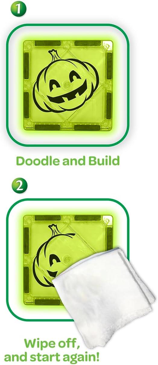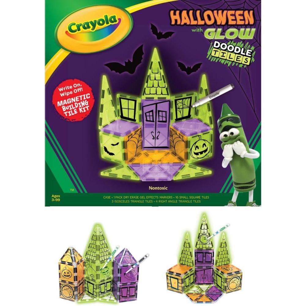 CreateOn Crayola Halloween Glow Doodle Magnetic Tiles Set, Building Set for Kids, STEM Toys for Boys and Girls Ages 3 and Up, 25-Piece Set